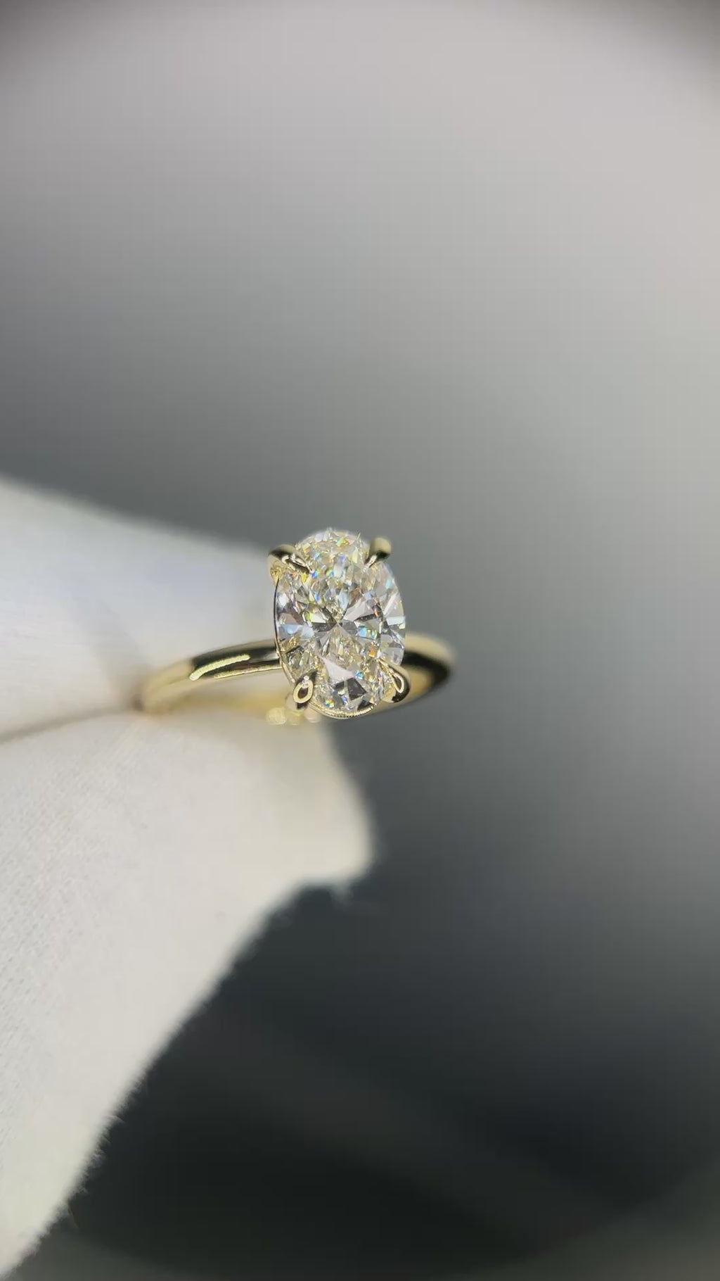 Featuring a brilliant oval cut lab grown diamond surrounded by an exquisite hidden halo, this design sparkles effortlessly from every angle.